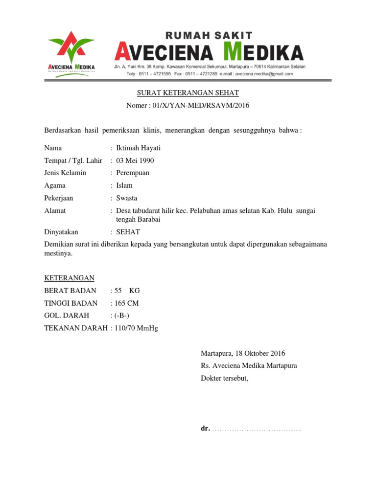 Surat keterangan sehat dalam keadaan sehat dan dapat mengikuti kegiatan belajar di universitas indonesia Surat keterangan usaha ini biasanya diperlukan ketika seorang. Surat keterangan sehat ini dibuat guna keperluan perpanjangan sim c. Surat keterangan sehat merupakan surat keterangan yang secara khusus dikeluarkan oleh dokter yang memiliki izin praktik tentang kondisi kesehatan dari orang yang bersangkutan. Surat keterangan usaha (sku) adalah surat yang menjelaskan secara resmi jenis usaha seseorang termasuk lokasi tempat usahanya. Surat keterangan sehat merupakan dokumen penting yang dibutuhkan untuk berbagai keperluan administrasi. Surat keterangan bebas narkoba (skbn) adalah surat yang menyatakan tubuh seseorang bersih dari narkoba. Surat keterangan berbadan sehat yang bisa dibuat di puskesmas. Surat keterangan ini sekilas hampir mirip dengan surat pernyataan, namun sejatinya. Surat keterangan sehat biasanya diterbitkan oleh dokter. Misal, ketika mendaftar lowongan pekerjaan. Sobat pengunjung brankas arsip yang berbahagia. Surat keterangan sehat biasa diminta untuk berbagai urusan administrasi.